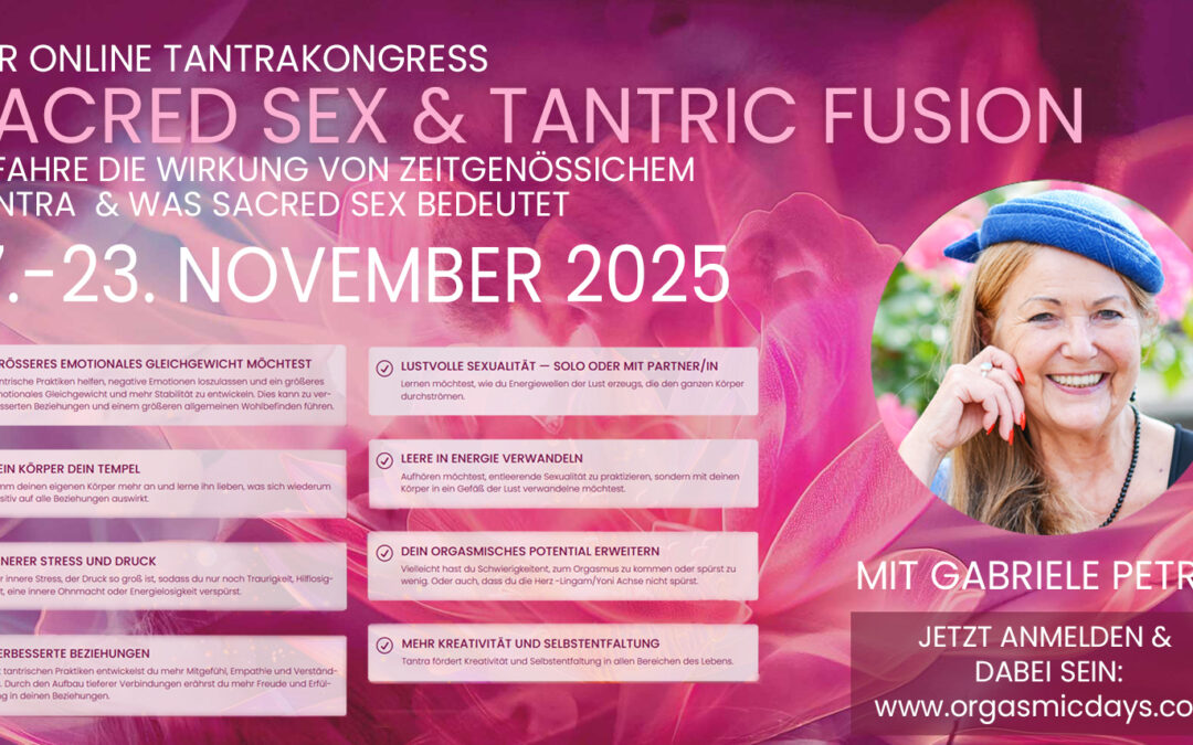 Am Montag, den 17. November 2025 startet der Kongress mit mehr als 35 Workshops, Interviews und Beiträgen zu Sacred S3x und Tantric Fusion.